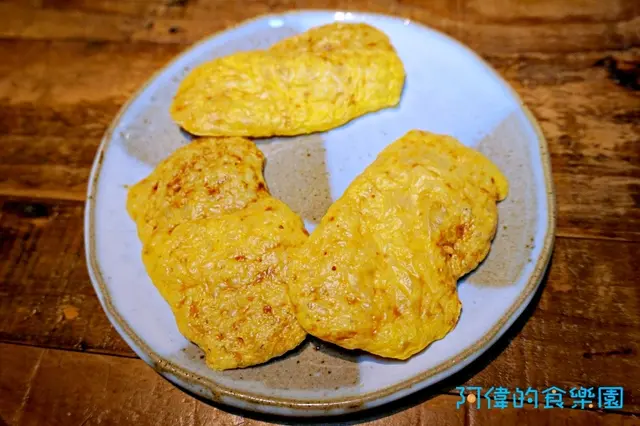 老闆日本友人的秘傳之一,純起司經由料理變成仙貝般的口感,不含任何澱粉,是想要享受點心,又不想多攝取澱粉的客人們的首選。除了搭配日本酒,紅酒也非常適合~熱呼呼的起司仙貝,散發出誘人的起司香味,香脆的口感和微微的焦香完全無法讓嘴巴停下來