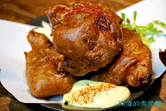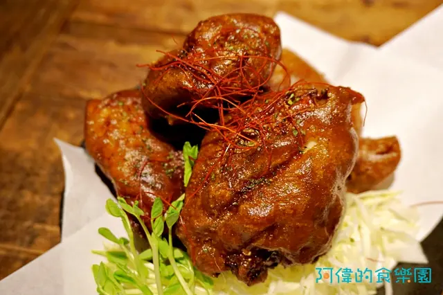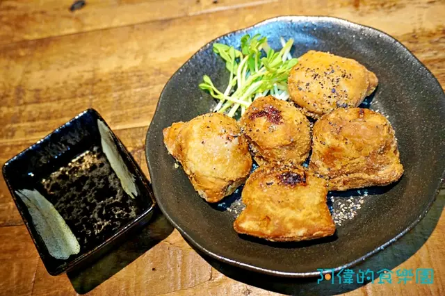 一開始我還以為是豬腳哩!每個都好大一塊,而且黑黑的。原來選用CAS合格的冷凍雞腿,麵糊是用Suntory黑啤酒調味才會比較黑。所以吃的時候還可以吃到微微的黑啤酒香味,搭配高麗菜絲和日本的Kewpie美乃滋,登時享受炸物和沙拉的雙重口感。這是道大人小孩都喜歡的料理,很多客人還特別外帶回去帶便當喔!