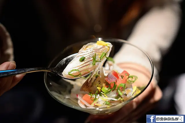 頂級生鮮食材的竹筴魚和干貝,服務人員說,出餐前會先炙燒過唷