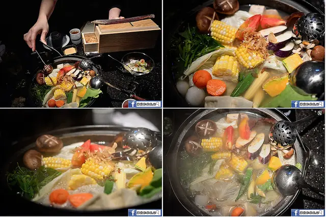 每一份鍋物套餐都有開胃菜、聚盆山蔬、主餐、松露金粥、甜點及飲品的供應