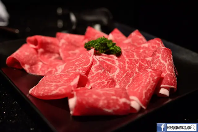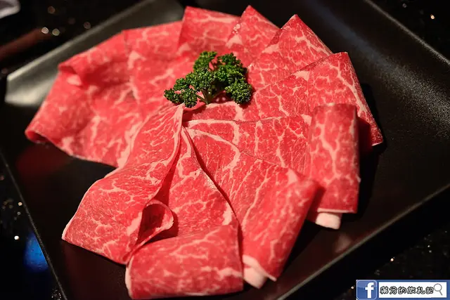 霜降牛大片切盤,肉質呈火紅色澤、油花適中,看起就很新鮮