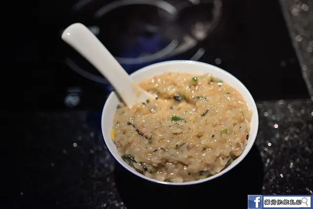 沒想品嚐完痛風鍋又來碗痛風粥,米粒多汁飽滿,全是海鮮濃郁的滋味,搭配松露和海苔絲,加重香氣,讓粥品更是美味