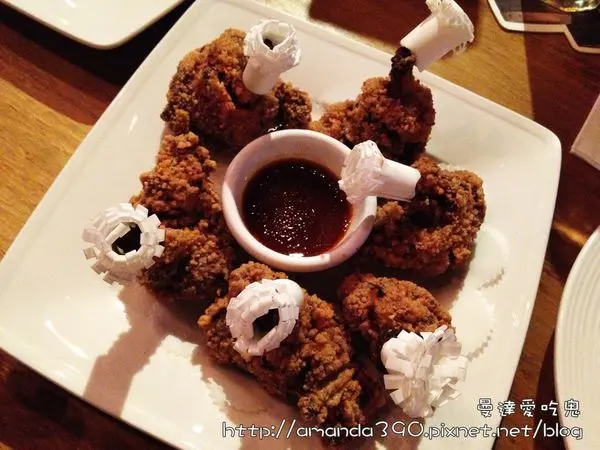 金色三麥的椒麻雞是採用翅小腿的部位裹粉下去炸