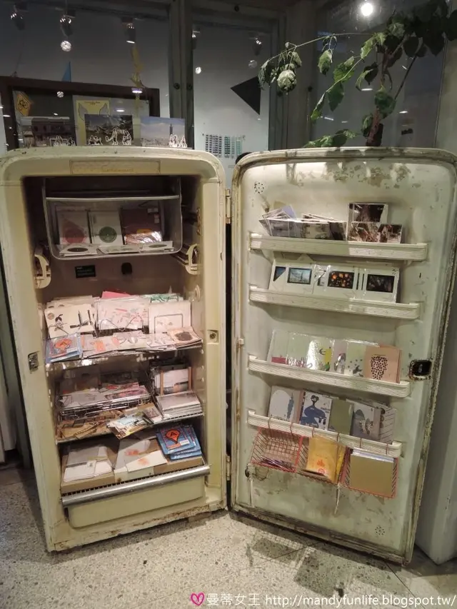 門邊放置販售卡片的是舊式的廢棄冰箱,室內裝潢和擺設仍保留一部分原來眷村老屋內的舊有元素。