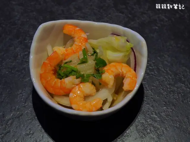 開胃的精緻小菜是以冷盤為主,放入鮮蝦,新鮮清爽且肉質飽滿