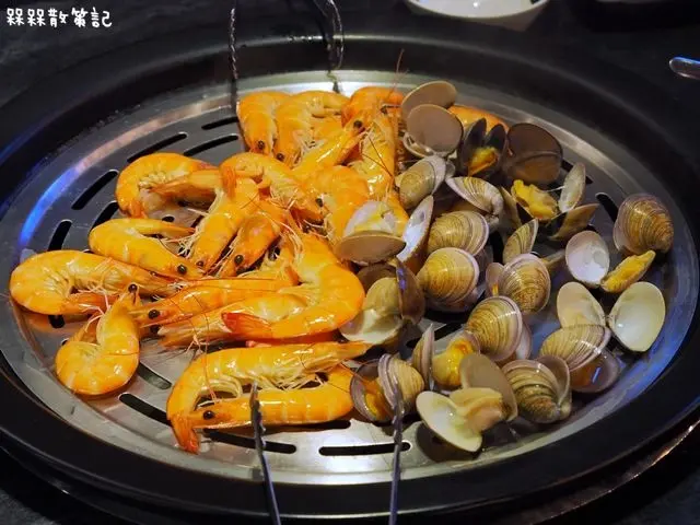 套餐的菜色齊全,兩種貝類與鮮蝦後,接著又端上扇貝、透抽。