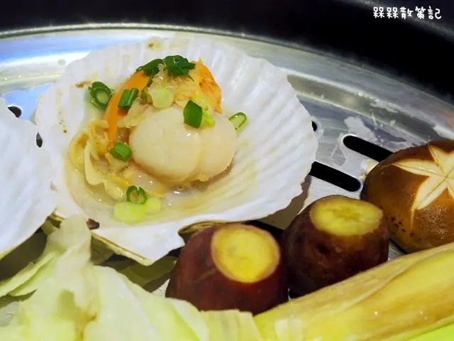扇貝搭上蒜香佐料,在蒸煮之後還有溢出湯汁,讓人沉浸在純粹鮮味之中。