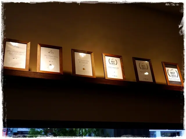 結帳櫃台旁放了一排食べログ(Tabelog)給予的獎狀,幾乎每年都有獲得。