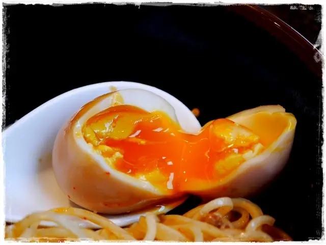 雖然每口都吃得出酒味,但卻不會過於強烈,也因此不會掩蓋溏心蛋的滋味,半熟乾溼程度剛剛好,和麵或飯一起品嚐也很搭。