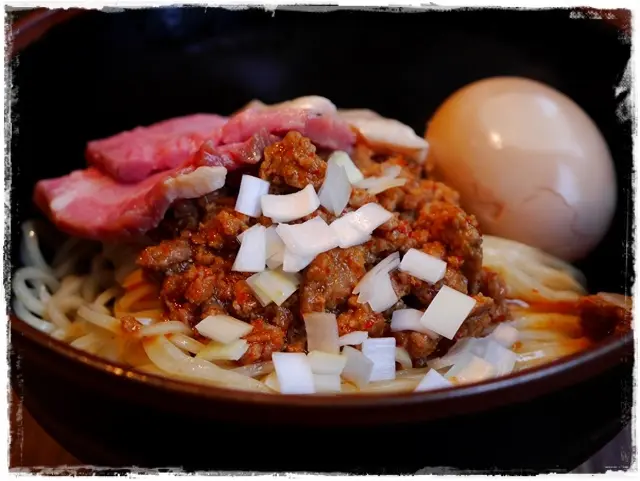 和拉麵一樣,特製餐點附上叉燒、雞肉各兩塊,並有一顆溏心蛋。