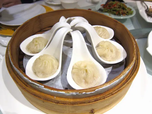用頗有份量的瓢匙裝著的小籠包,為的是讓蒸跟吃的時候都不會讓小籠包裡的湯汁流掉