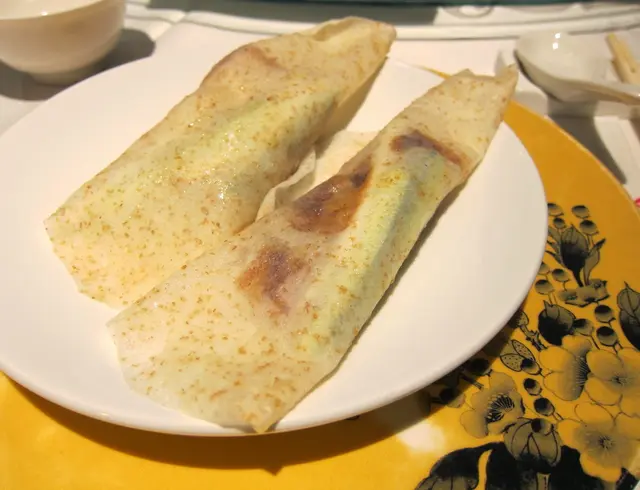 蕎麥麵皮包著鴨皮、酸薑、蔥及小黃瓜