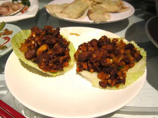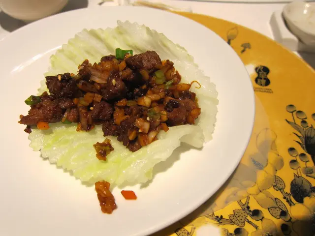 炒好的蝦鬆和生菜分開裝盤,由服務人員端來