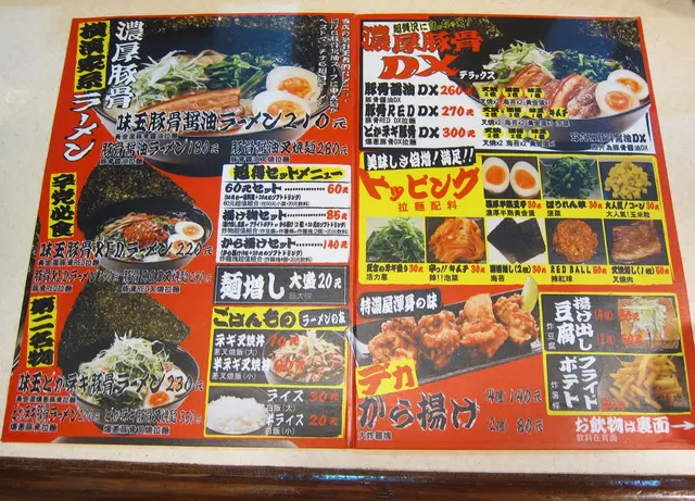 痾...菜單也全是日文!沒有啦~大字的日文品名下面還有小字的中文品名,口味選擇不多,一共就是4種,每種口味可以選擇加黃金蛋或叉燒