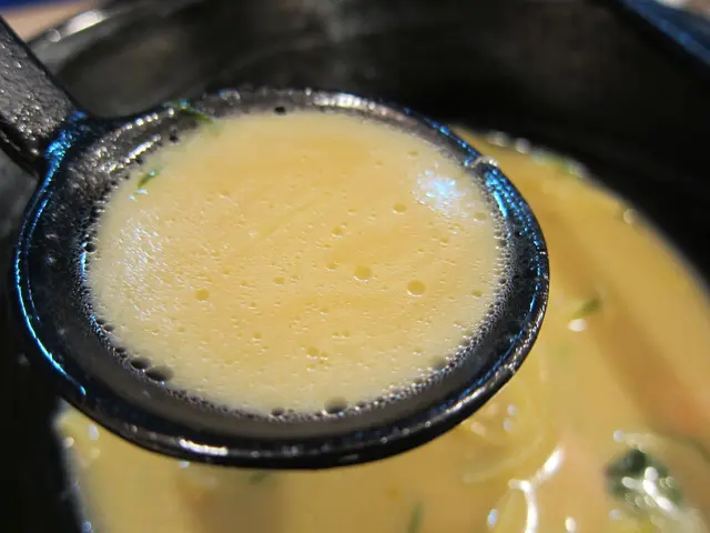湯頭部份,顏色比濃厚豚骨醬油DX深,跟濃厚豚骨醬油DX鹽味偏多的味道比起來,多了奶油的濃郁味道,但不油不膩,會想讓人多喝幾口,我給31/40分