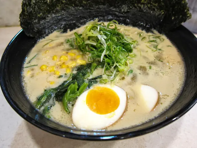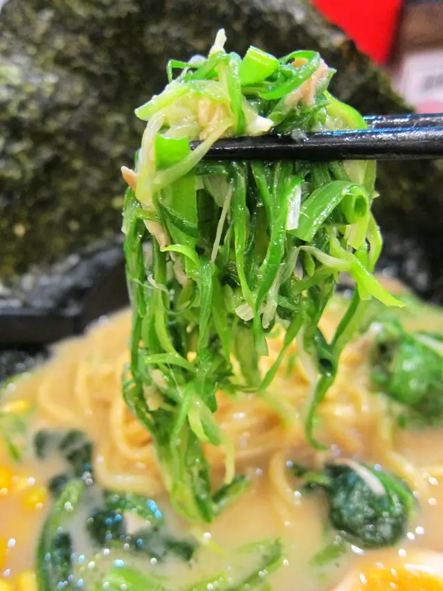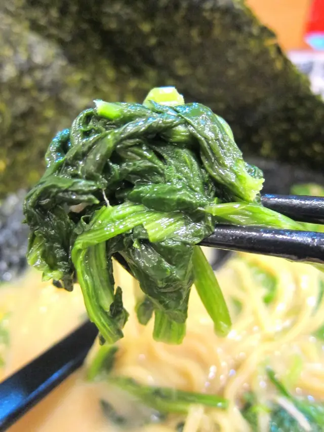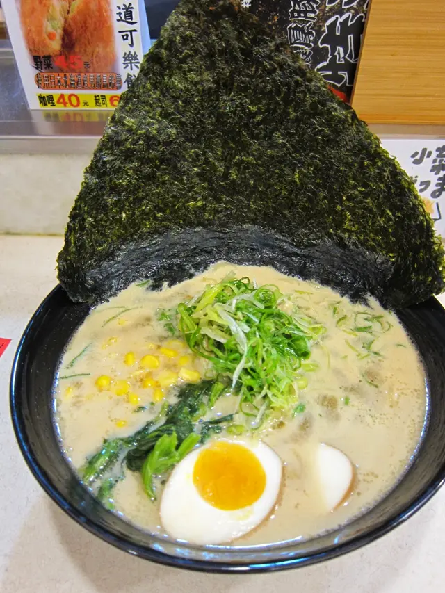 裡面有1顆黃金蛋、2片海苔、蔥、空心菜,比濃厚豚骨醬油DX還多了玉米,但是!怎麼沒有叉燒!!!