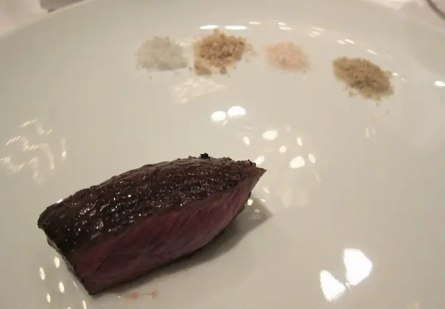 再切一塊牛排放上來慢慢配著吃,試試每一種鹽的口味