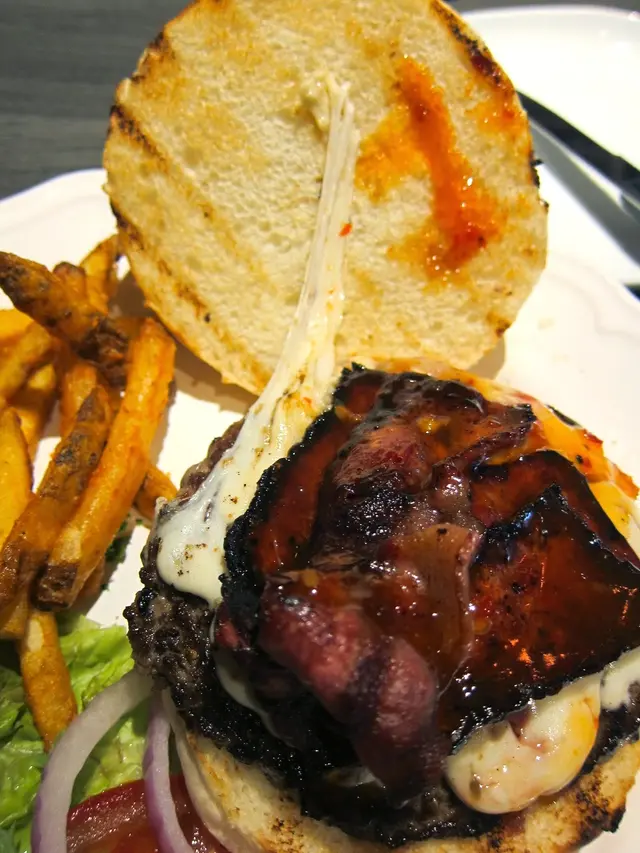 酸酸甜甜的泰式甜辣醬跟培根、起司還有漢堡肉真是太搭了~
