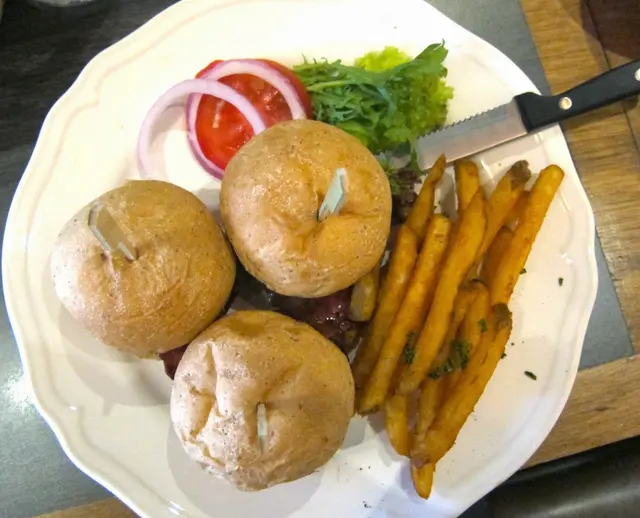 一份小漢堡有三種口味:起司培根、BBQ醬燒、藍起司