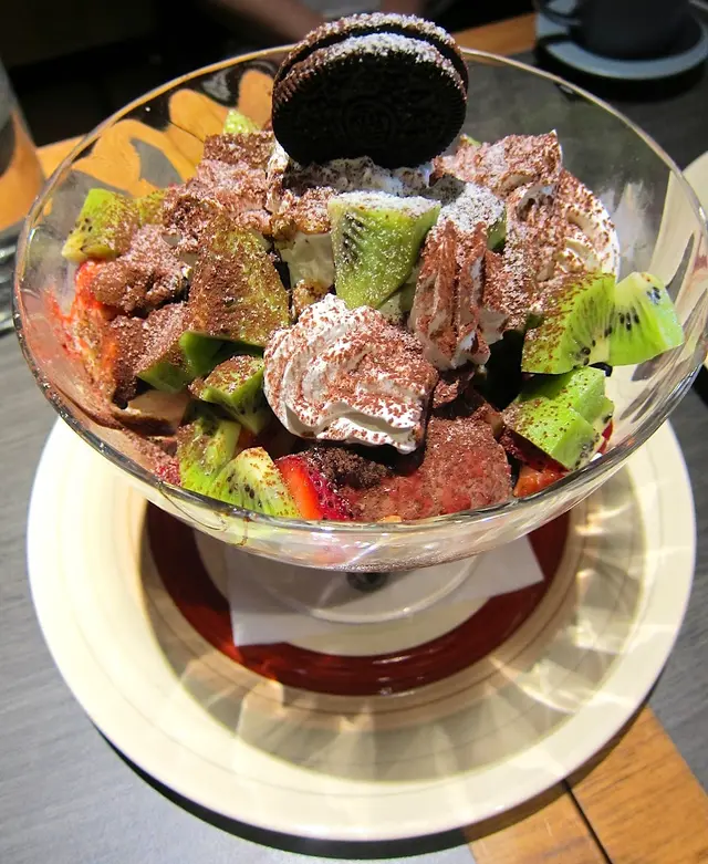 草莓、藍莓、奇異果、OREO餅乾、焦糖醬、杏仁片、碎核桃