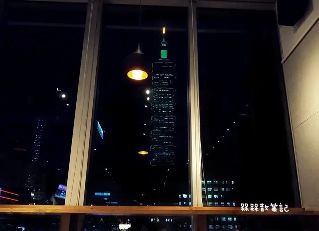 餐廳的深處有一大片透明玻璃窗,外面可以俯瞰信義區夜景,正面就是台北101