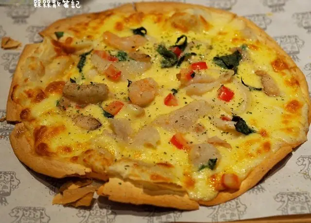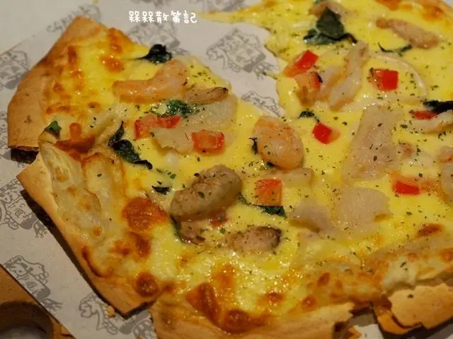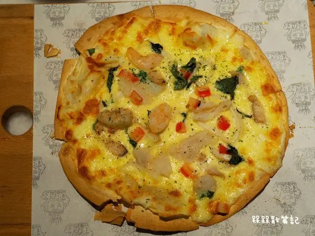 我們改點海鮮總匯披薩,鋪上滿滿的海鮮,用料相當豐富。