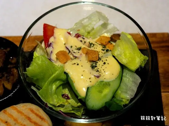 早午餐系列都有附上沙拉,雖然份量不大,但是生菜都還算新鮮,沙拉醬汁也很搭