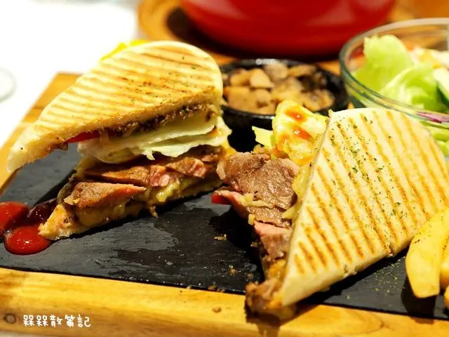 搭配酥脆的帕尼尼外皮,內部的蔬菜、帶有嚼勁的牛排,都一齊被咬進口中,多重口感層次,讓人相當滿足。