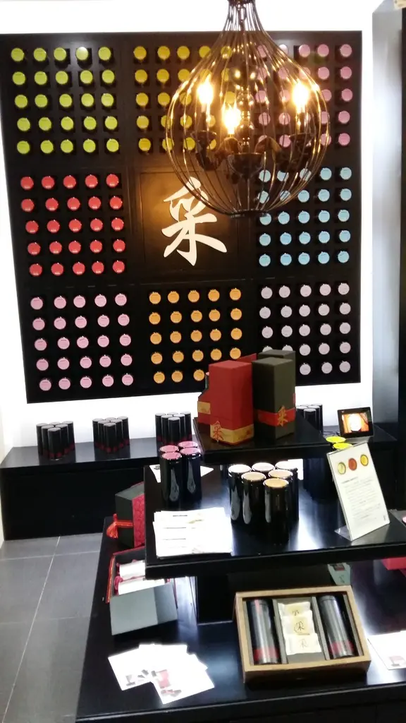 店內旁這道『采』牆入門之後有各式各樣的茶款展示櫃台,並擺放各式各樣的茶禮盒,