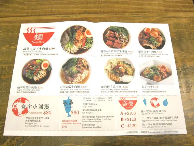 沒錯!你沒有看錯!晶華冠軍牛肉麵坊的麵從NT$220起跳,最貴的是NT$680