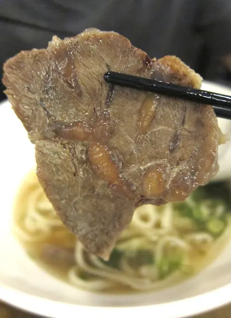 帶有一點筋的牛肉片,完全沒有讓人期待的軟嫩、絲絲入口即化的感動口感