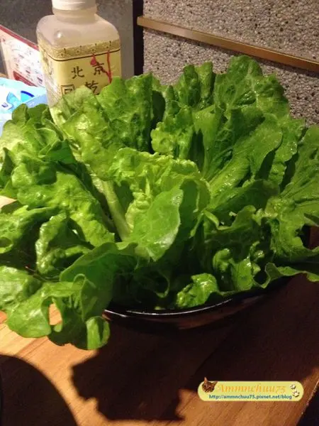 綠色蔬菜,好健康唷~後面還有被遮住的烏梅汁