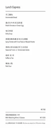 歐傑洛的餐點其實很豐富,有8款前菜、3種湯、10款主食還有義大利麵、燉飯、披薩、甜點等,不想單點的還可以點午間或晚間套餐,午間套餐NT$780,晚間套餐則有NT$1,480及NT$1,880兩種選擇,若加NT$450,就可以有兩杯紅酒或白酒。以酒類來說其實相當便宜。除了制式菜單外,還會不定期不定時推出特別套餐,都蠻受歡迎的。