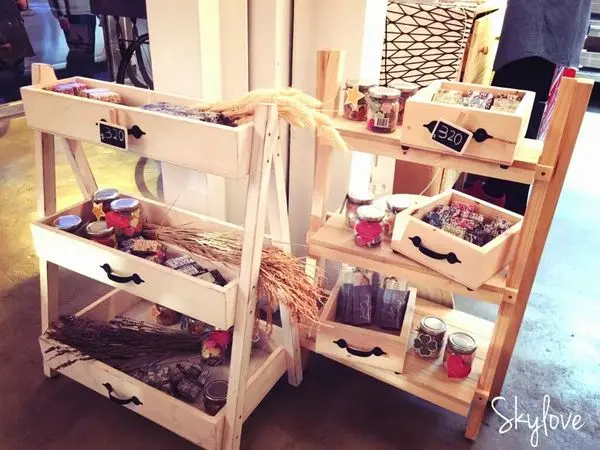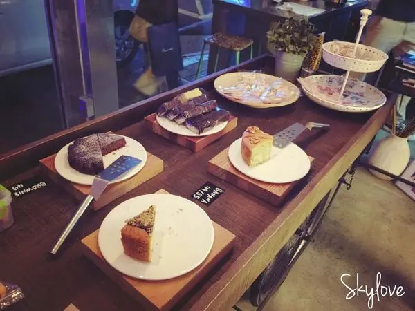 店內的小餐車上擺放 手作餅乾與蛋糕系列