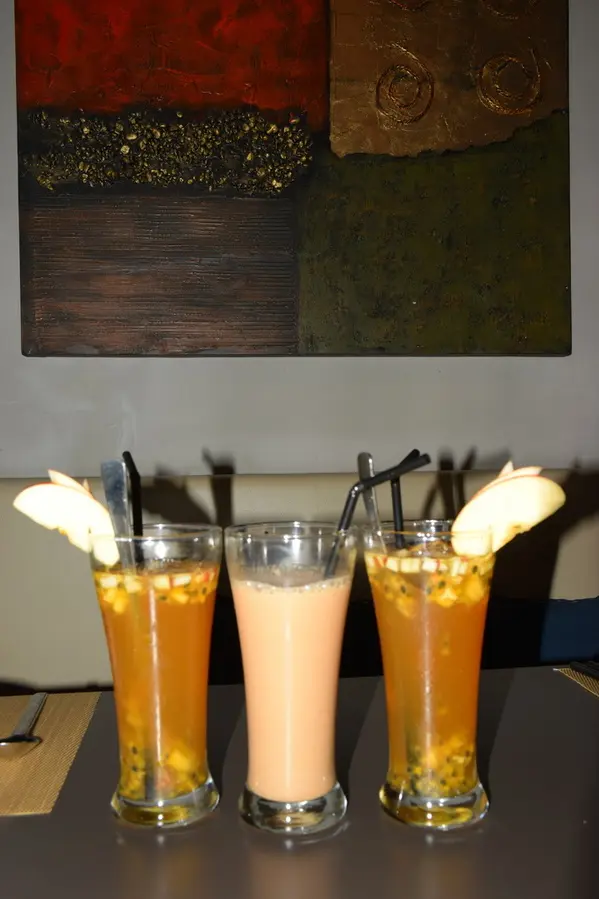 餐後隨甜點附上招待檸檬沙瓦、鳳梨沙瓦(左)。