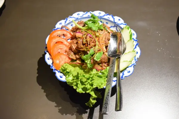 【泰北辣拌菲力】煎烤至八分熟的菲力再和辣椒同炒,酸辣開胃。