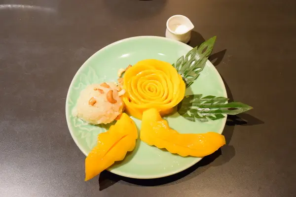 擺盤唯美的【芒果糯米】以鮮甜芒果做成一朵盛開的花,漂亮得像是藝術品,搭配椰漿糯米甜點,進入完美ENDING〜