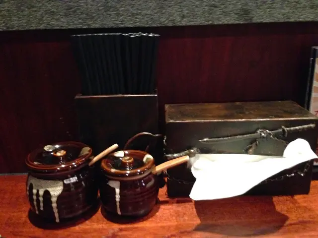 面紙盒跟神山店一樣,充滿濃濃武士風格,桌上的兩種調味品,蒜末&辣椒粉
