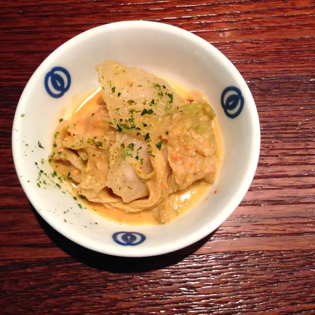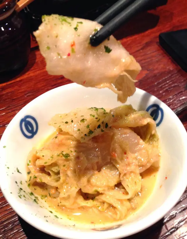 日本的泡菜不像韓國的泡菜走鮮紅路線,而是黃金泡菜路線,比較沒有那麼辣,酸度比較高,也比較清爽(但依舊認為沒有NT$80的好吃程度)