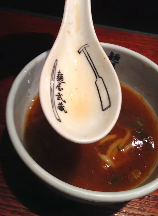 限量總是很吸引人!但我已經下定決心要跟神山店一樣吃沾麵!虎嘯店的沾麵跟神山店一樣只有一種,但是比起神山店的沾麵名稱濃厚沾麵,虎嘯店的虎嘯沾麵,旁邊再加上虎嘯限定,氣場整個變強阿~~~武藏雙刀流拉麵感覺超厲害的!讓我想到海賊王的索隆(雖然少了一刀)