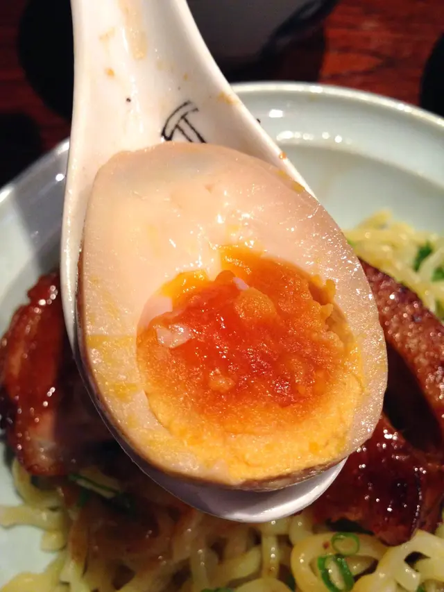 糖心蛋的蛋黃雖然沒有非常的不熟(我喜歡吃很不熟的蛋黃~)但口感還算濕潤,靠近蛋黃的蛋白甚至也有一點點半熟的感覺,沒有太多的調味,很清爽、濕潤度又很夠的糖心蛋,總結這一碗虎嘯沾麵得到92分!