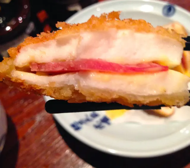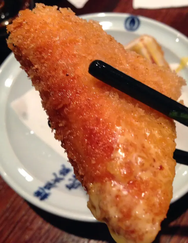 其實白色的部分是鱈魚漿啦!包著火腿跟起司一起下鍋油炸,起司爆出來的樣子光是用看的就覺得很滿足!
