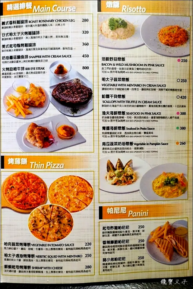 店內的主餐以義大利麵、燉飯、排餐為主,