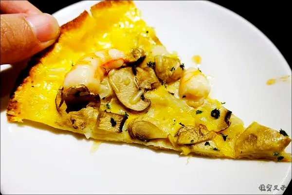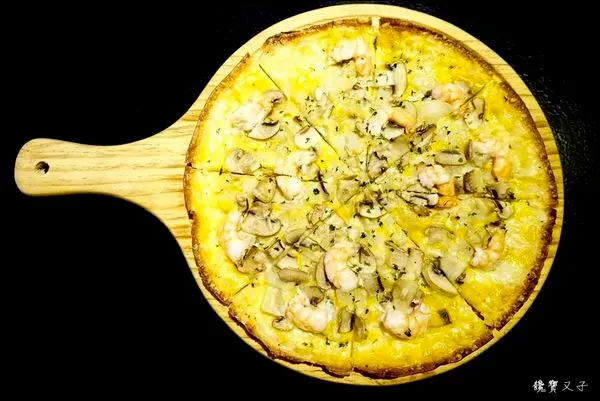 烤薄餅很薄,所以餅皮吃得到脆口的口感,加入三種起司的滋味也非常鹹香濃郁,