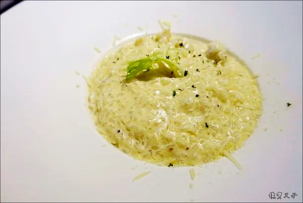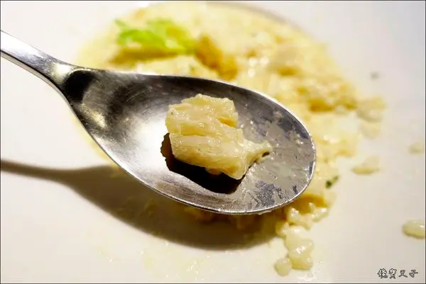 ▲碩大的干貝則隱藏在雪白的燉飯中,每次不經意吃到時總是驚喜。