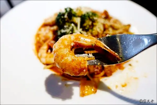 這款是辣味的義大利麵,以松阪豬與鮮蝦搭配成的海陸饗宴。