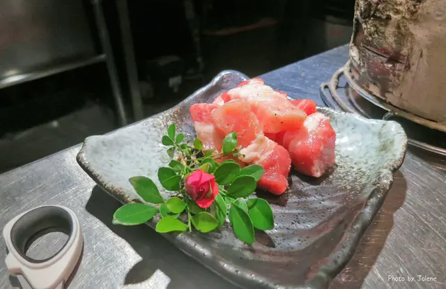 雖然角切部分油脂占比較高,原先以為會吃不下去,沒想到把油的部份烤得恰恰
