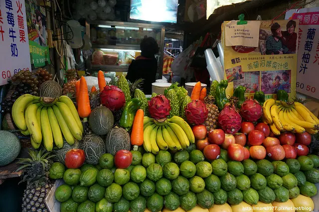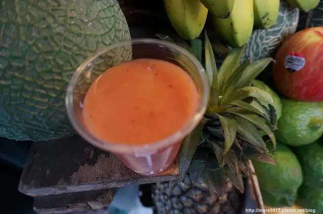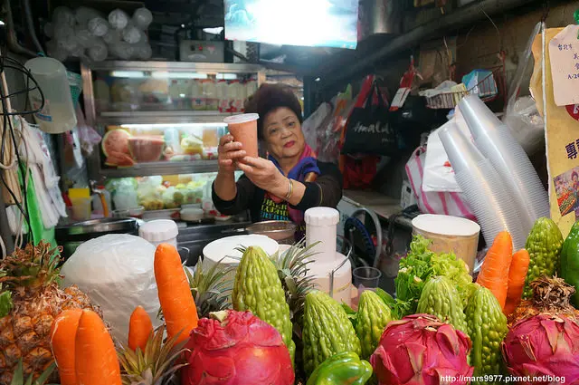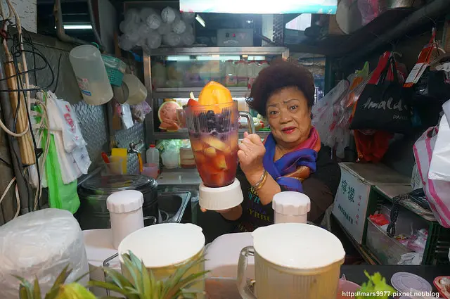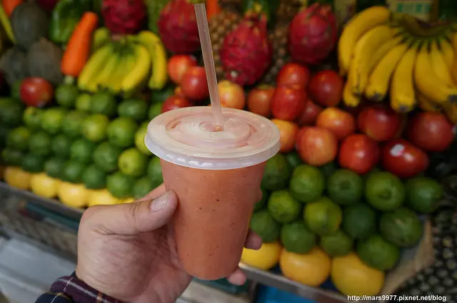 沒有很明亮的招牌或就如同在一般的市場夜市裡一樣的水果果汁攤。