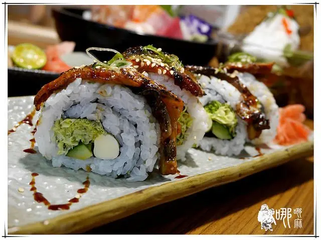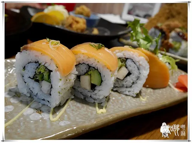 上頭的燻鮭魚片倒不似龍捲的鰻魚那麼搶戲,
