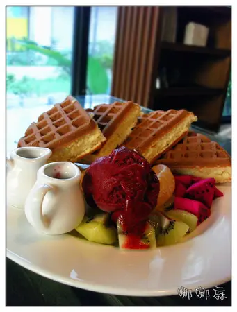 冰淇淋是使用莫凡彼的黑醋栗口味,還蠻少見的,酸酸甜甜滋味和鬆餅很搭,